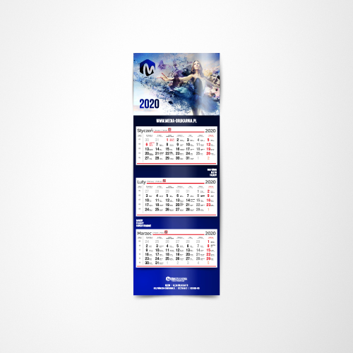 Nasze standardowe kalendarze mają wymiary 295 x 830 mm. Na etapie przygotowania plików, możemy przesłac makiety poszczególnych elementów kalendarza trójdzielnego, celem ułatwienia wykonania projektu. Cena: od 1656zł