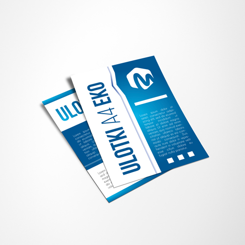 Wszystkie podane ceny są cenami brutto i zawierają koszt dostawy. Format A4 EKO - 206 x 284 mm netto. Wymiar projektu to 210 x 288 mm brutto. Zobacz makiety ulotek Cena: od 420zł